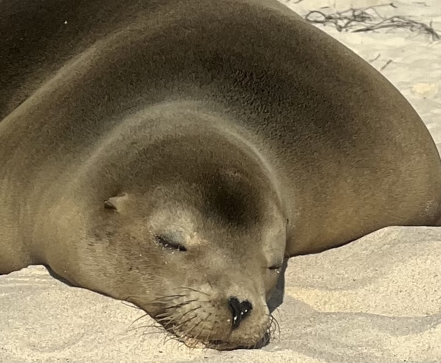 Momma Sea Lion With Heart Nose Taking Nap On Beach.