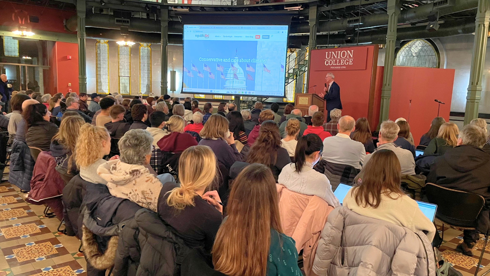 Bob Inglis speaks at Union College, Schenectady, New York, on February 3, 2025. Photo credit: Salil Benegal.