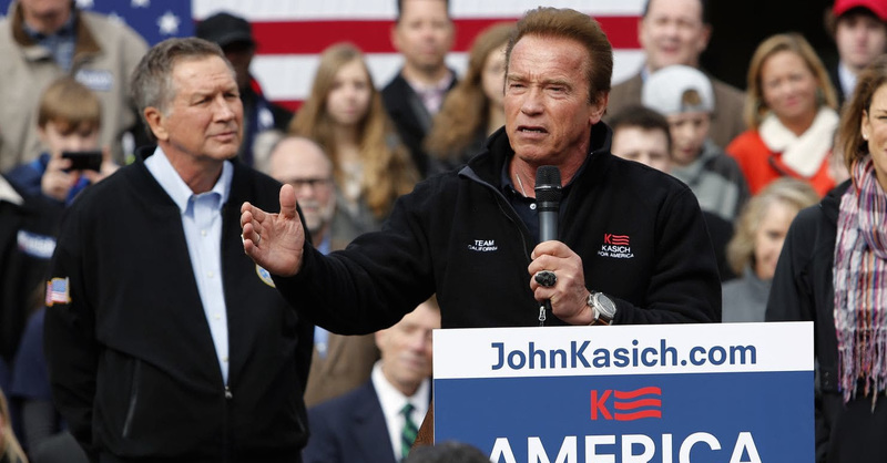 Schwarzenegger seemed to push his old friend Kasich to run in 2020. “Get back to Washington and kick some butt,” he said.
